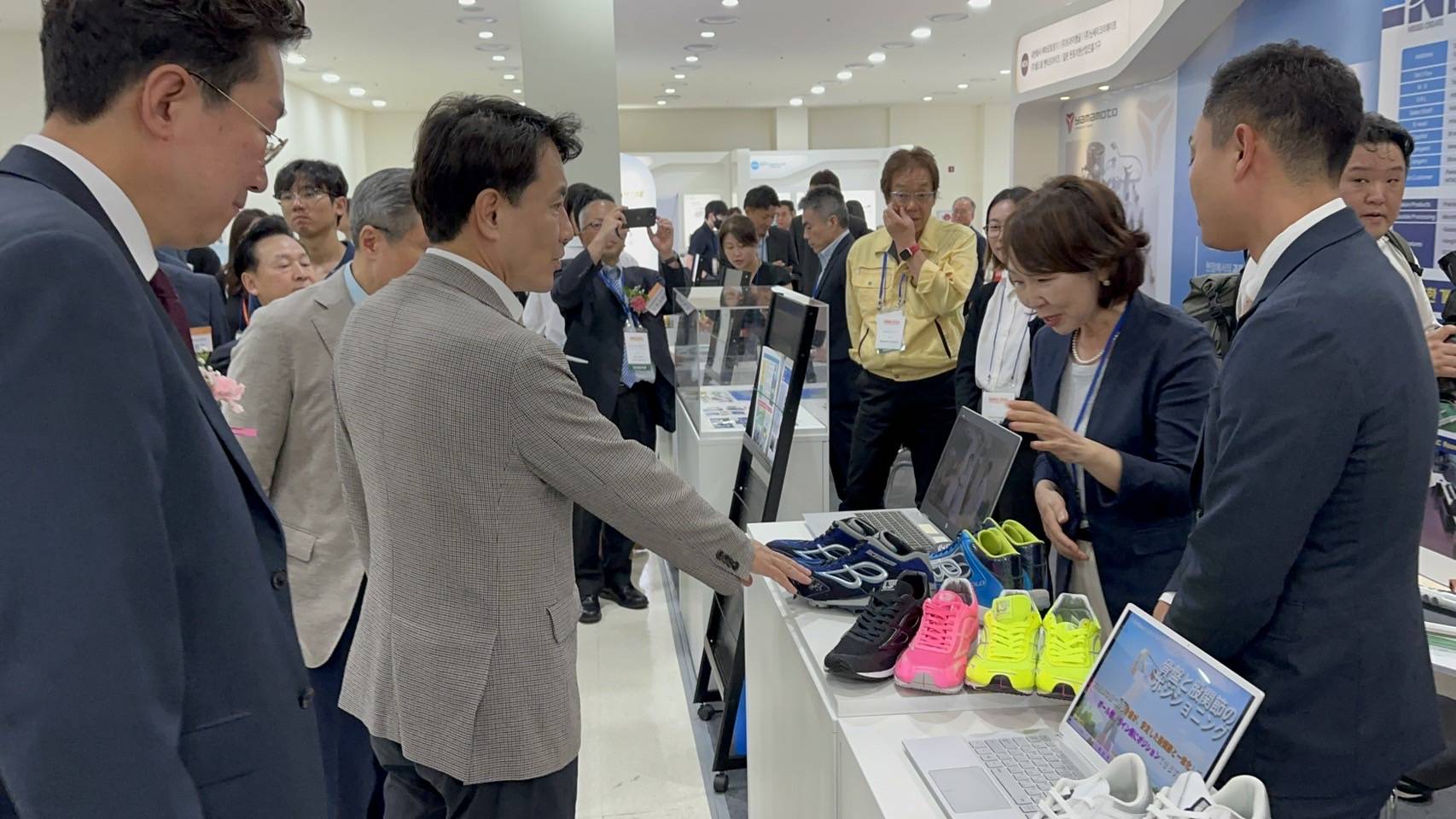 テクノバレーのセッティングにより定められた表示物、展示ブースには、世界各国のバイヤー,医師,技術者が多数お集まり下さり、試着,歩行,トレーニング体験に予想を超えた感動と反響を交換することができました.
