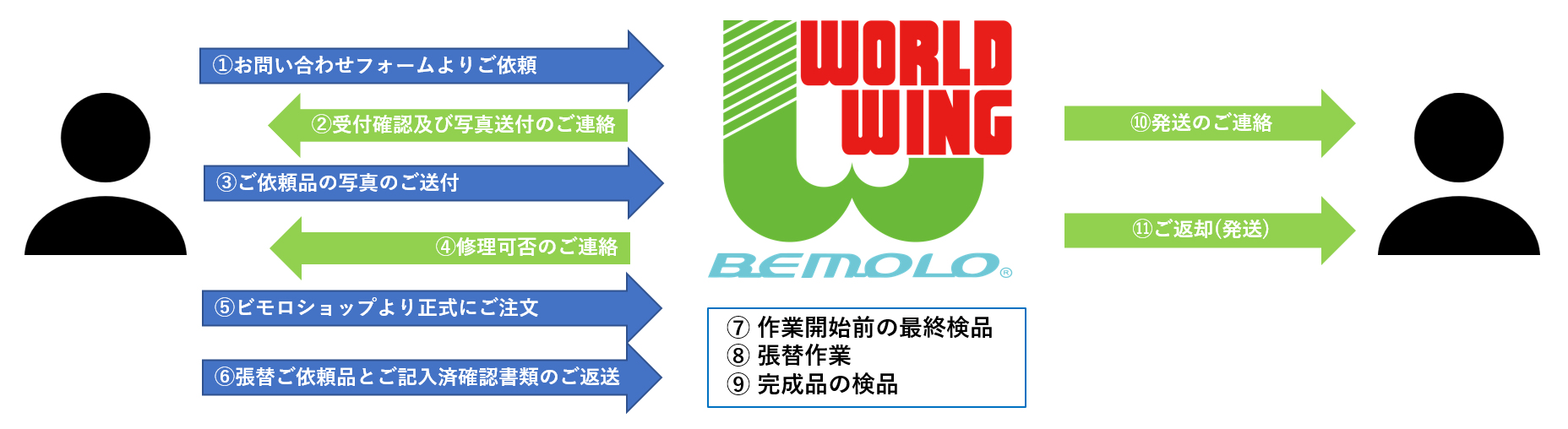 ~お申し込みから張替作業完了品のご返却までの流れ~ |