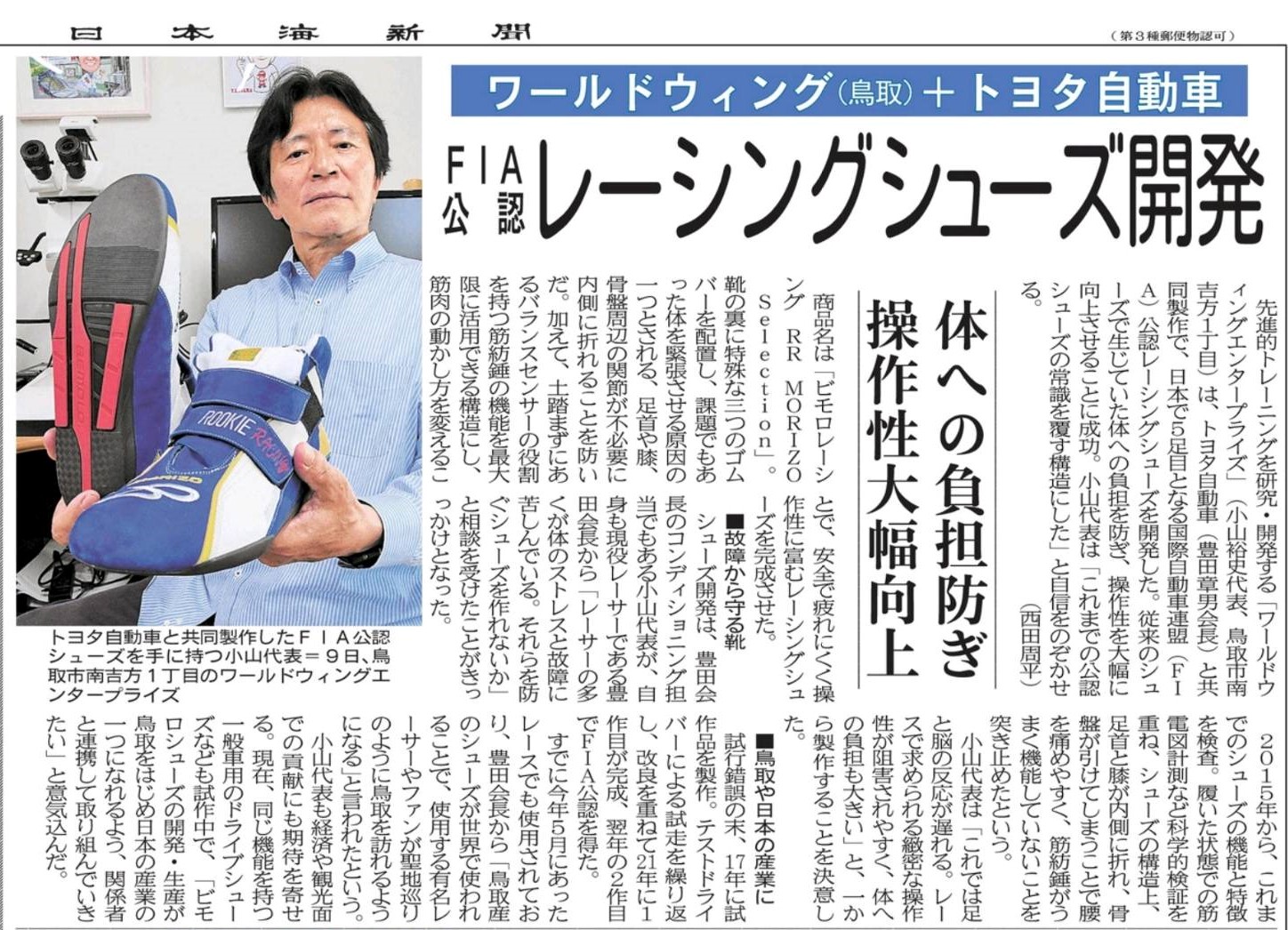 ▶ワールドウィング(鳥取)+トヨタ自動車 FIA公認レーシングシューズ開発(2023.6.14/日本海新聞) |